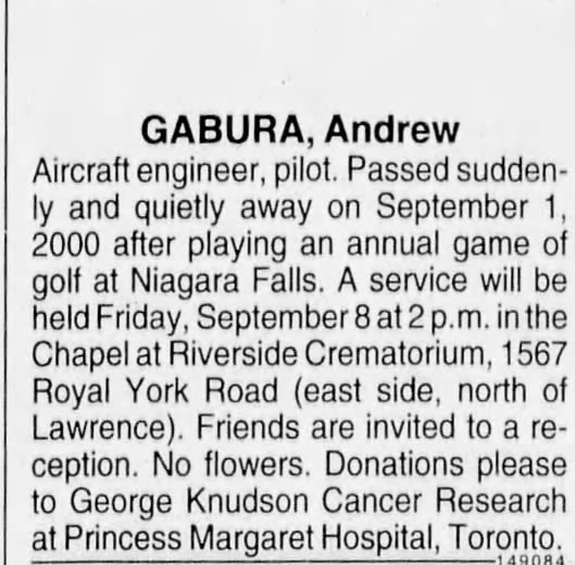 gabura andrew obit national post 2000 09 06