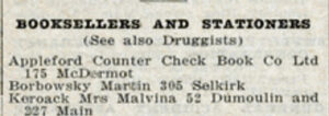Martin opened a bookstore at the house that is also listed on page 1280 of the Directory. It is probably for this reason that he chose a location close to the Winnipeg’s business area near Main Street.